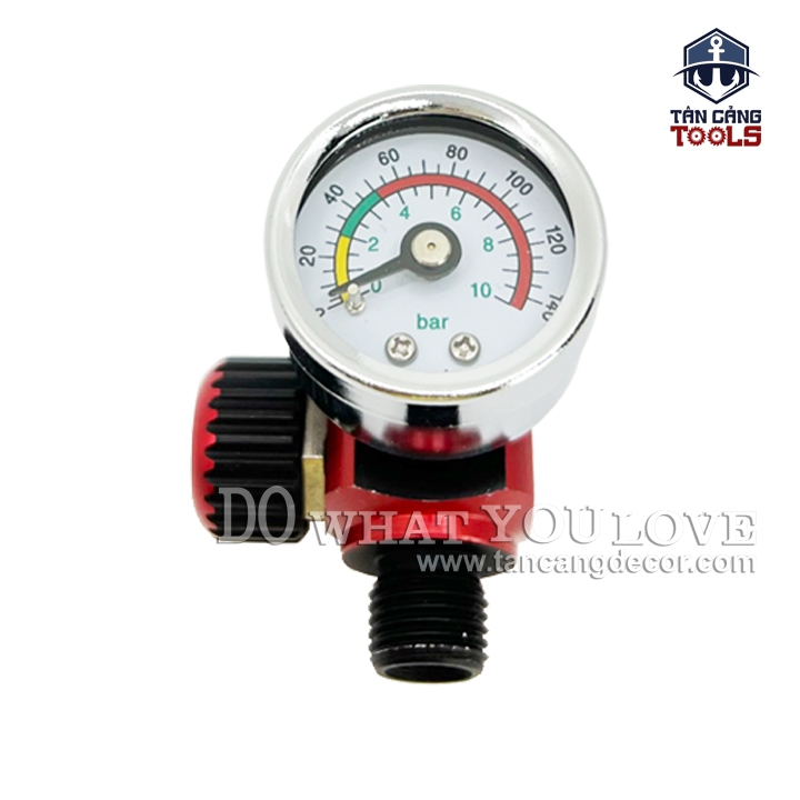 - Đồng Hồ Đo Và Điều Chỉnh Áp Suất Dành Cho Súng Phun Sơn NPT sẽ giúp sản phẩm kiểm soát áp lực ra của máy nén khí, giúp cân bằng theo yêu cầu để phun sơn phù hợp nhất.