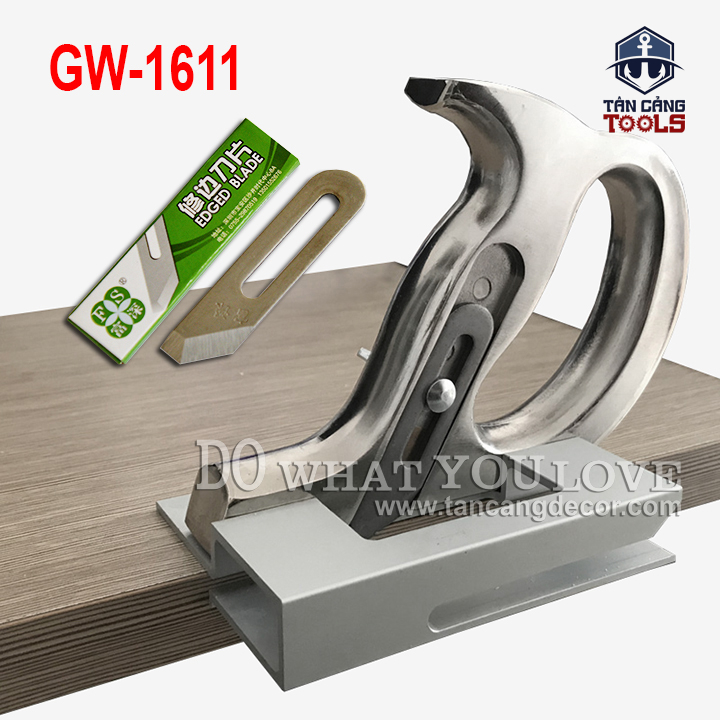 THÔNG TIN SẢN PHẨM: Xuất Xứ : Hàng Nội Địa Trung Quốc. Mã Hiệu : GW -1611 Chất Liệu : Lưỡi Thép hợp kim cứng – Tay Cầm Nhôm Cứng. Kích Thước : 15 x 8.8 x 13 cm ( Như Hình Vẽ ) Sản phẩm chuyên dụng gọt chỉ Verneer, PVC, các dòng chỉ nhựa thông dụng, chỉ An Cường 0.6 – 1.3 mm, Laminate, Ván Verneer. Lưỡi Gọt có thể mài ( Resharpable- Steel) Bộ sản phẩm đi kèm 2 lưỡi dao thay thế..