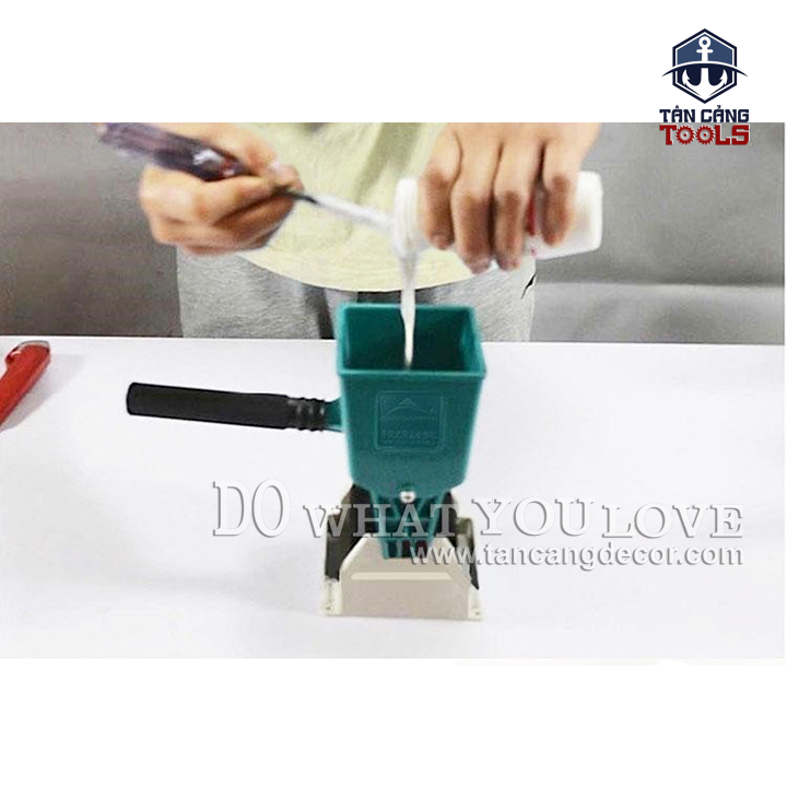 1. Đặt bộ lăn keo này trên kệ, sau đó đổ keo vào thùng chứa keo. lưu ý: Ít hơn 75% dung tích của thùng chứa keo để chống tràn keo.