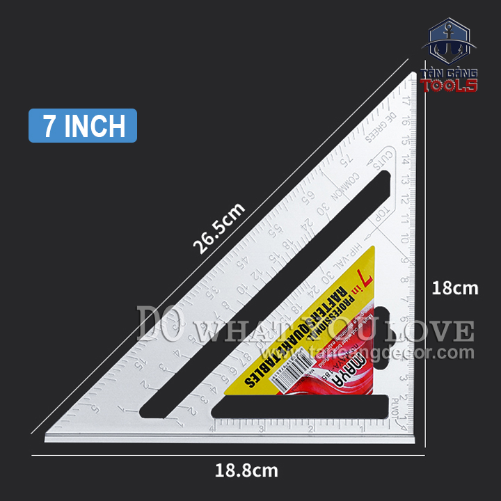 THÔNG TIN SẢN PHẨM: Hãng sản xuất: MAYA Mã hiệu: MAYA-185 Êke cỡ lớn tương đương 7inch – tương đương 18 Cm. Độ dày thước 4.5mm. Thước tam giác nhôm mạ oxit Bề mặt được sơn mạ oxit màu trắng, có vạch số được khắc và sơn trắng rõ nét hơn; Xuất xứ: Taiwan.