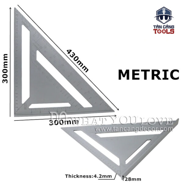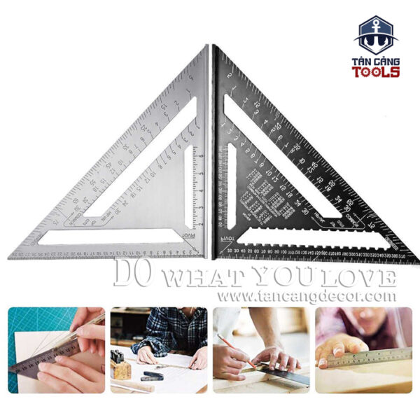 - Chất liệu nhôm cao cấp: Thước tam giác này được làm bằng chất liệu nhôm được gia công dày dặn, chống ăn mòn và bền