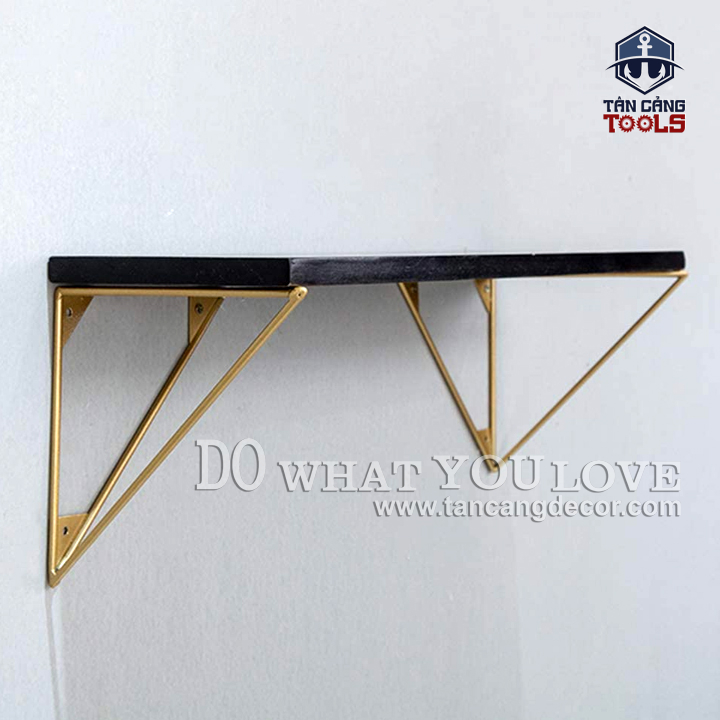 Giá Đỡ Kệ Treo Tường Hairpin Hình Tam Giác Lớn 20 Cm – Sắt Vàng Nhụ ( 1 Cặp )