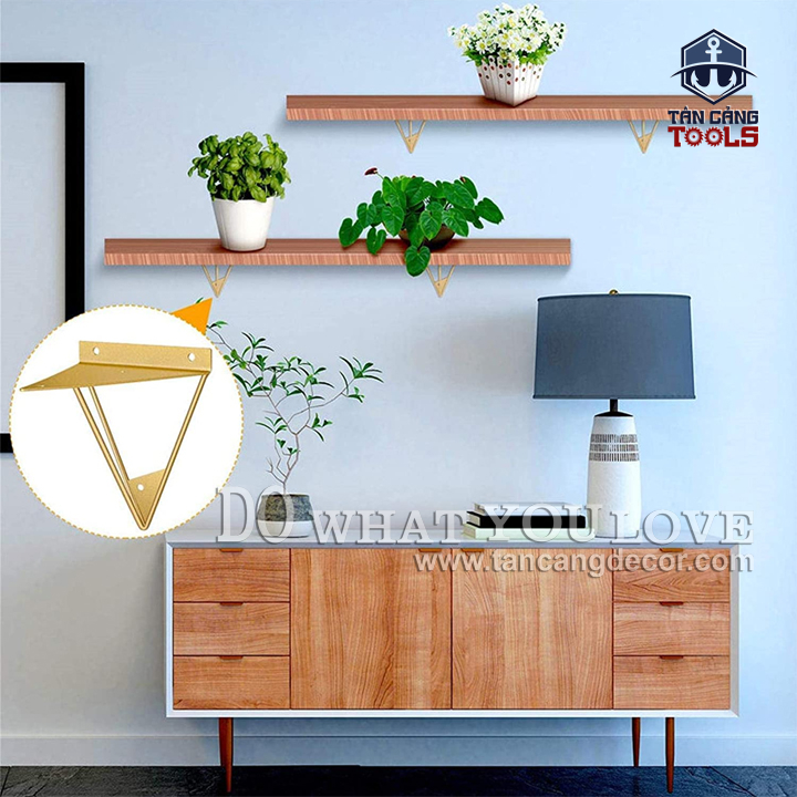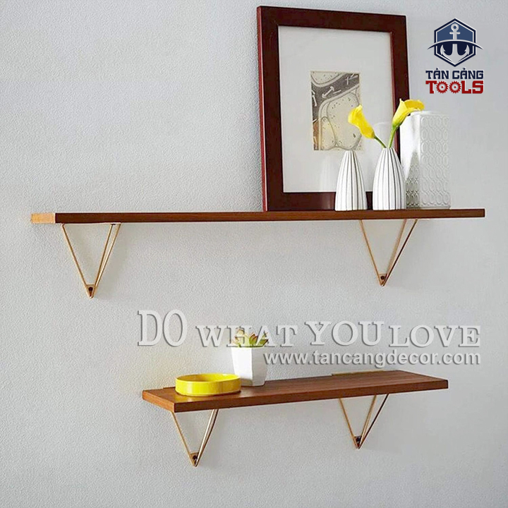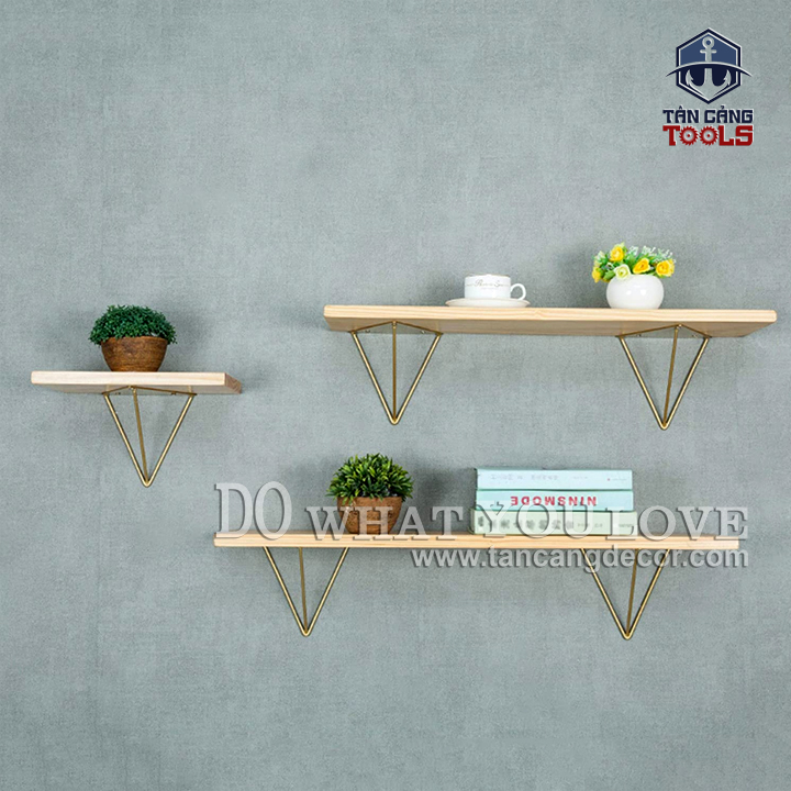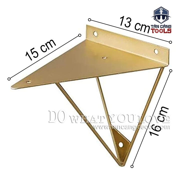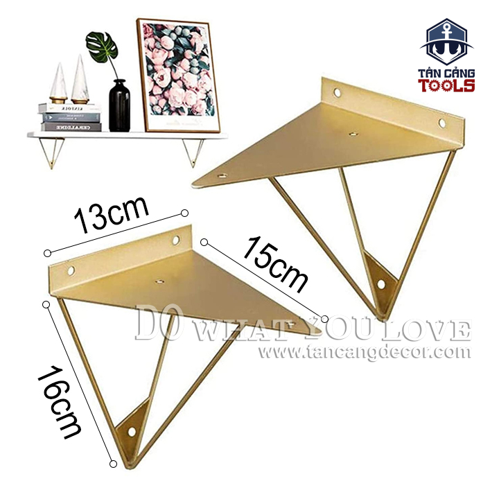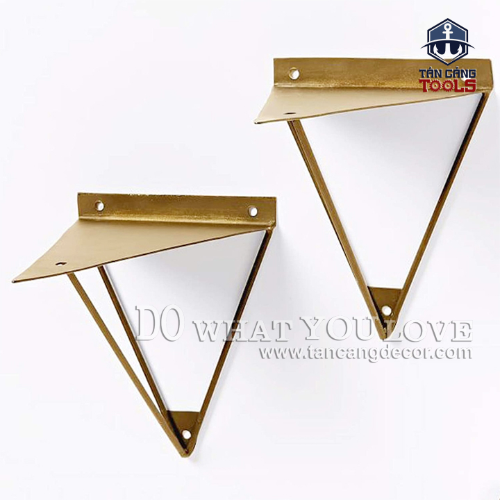 THÔNG TIN SẢN PHẨM: Xuất Xứ : Việt Nam Thương Hiệu : Tân Cảng Decor Mã Hiệu : Hình Tam Giác 15 Cm. Màu Sắc : Vàng Nhụ – Sơn 2 Thành Phần. Kích Thước : 13 x 15 x 16 Cm. Sử Dụng Sắt : Phi 8. Độ Dày Sắt : 4 mm. Trọng Lượng : 0.8 Kg. Đơn Giá Bán : 1 Cặp Gồm 2 Cái. Sản Phẩm Đi Kèm Vít, Tắc Kê, Chưa Bao Gồm Tấm Gỗ. Có Thể Kết Hợp Tấm Gỗ Có Bề Rộng Từ 15 Đến 30 Cm Bạn Có Thể Tìm Thêm Sản Phẩm Khác Và Tấm Gỗ Tại Tân Cảng Decor.
