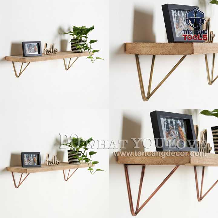 Giá Đỡ Kệ Treo Tường Hairpin Hình Tam Giác Nhỏ 15 Cm – Sắt Vàng Nhụ ( 1 Cặp )