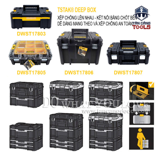 - Hộp Đựng Dụng Cụ Dewalt DWST17803 với thiết kế đặc trưng với tông vàng đen của Dewalt.Chất liệu nhựa chịu lực cho độ bền lâu dài.