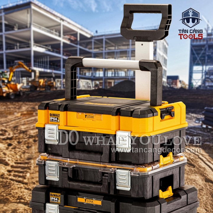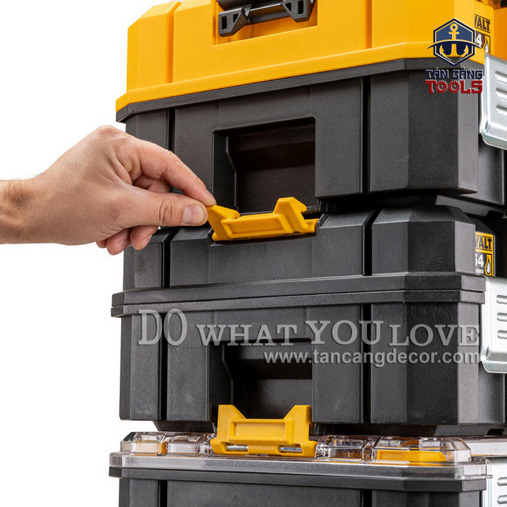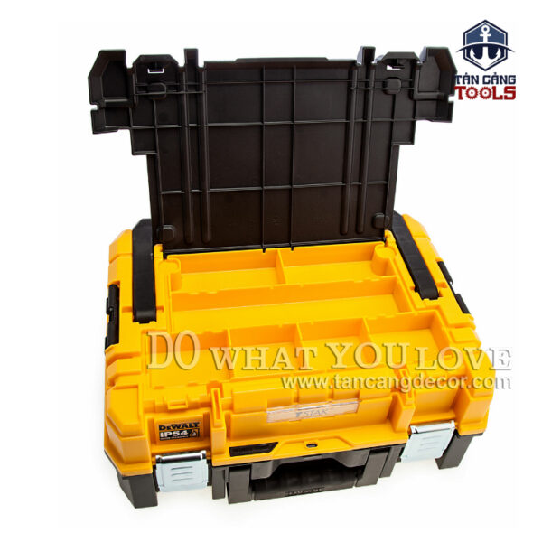THÔNG TIN SẢN PHẨM: Xuất Xứ : Trung Quốc. Thương Hiệu : DEWALT – HÀNG CHÍNH HÃNG Mã Hiệu : DWST83344-1 Chất Liệu : Nhựa Cứng Tổng Hợp Chịu Lực Cao – Khóa Thép. Màu Sắc : Đen Nhám – Vàng. Kích Thước : 440 x 332 x 183 mm Thùng Lớn Chống Nước IP54 Trọng Lượng : 1.8 Kg. Khóa Hộp Thép Chống Rỉ Chắc Chắn. Mặt Trên Chia Các Ngăn Đựng Phụ Kiện, Bên Dưới Đặt Máy Móc. Có Thể Xếp Chồng Hộp Với Nhau Bằng Chốt Khóa Chắc Chắn. Đơn Giá Bán 1 Cái.
