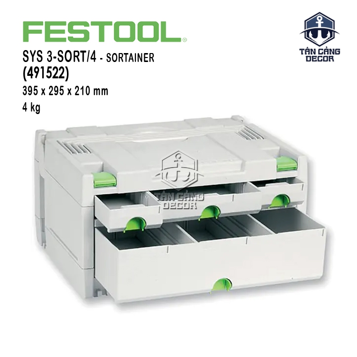 - Hộp Đựng Dụng Cụ Festool SORTAINER SYS 3-SORT/4 (491522) là một sản phẩm đặc biệt trong hệ thống Systainer³ của Festool, thiết kế để tổ chức và lưu trữ các vật dụng nhỏ, phụ kiện, và linh kiện trong các công việc chuyên nghiệp như gia công, sửa chữa, hay xây dựng.
