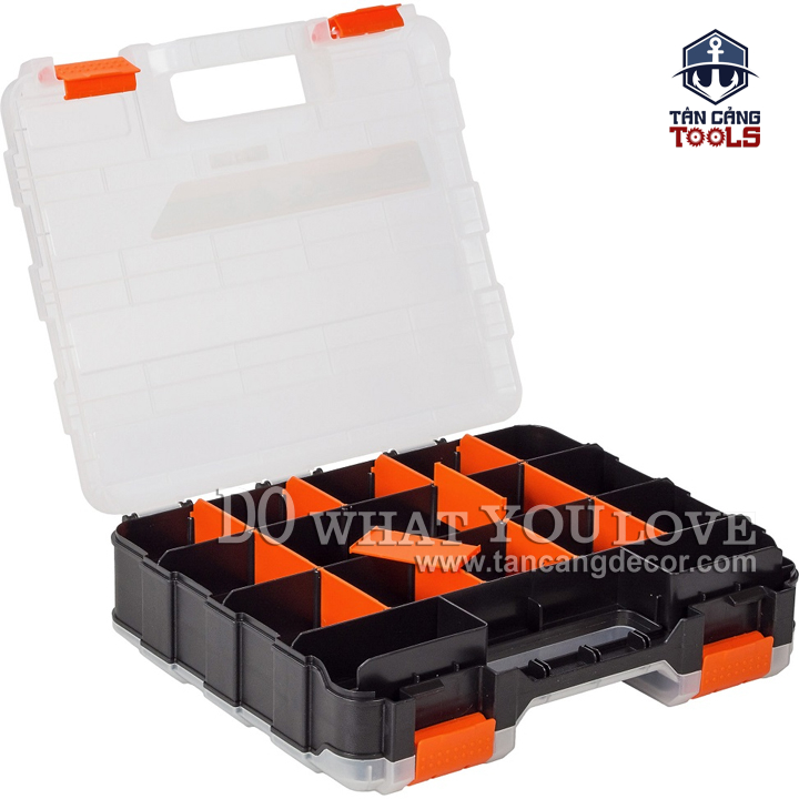 Khóa gài chắc chắn , đảm bảo chốt cứng cáp khi di chuyển. - Với thiết kế bắt mắt, tiện dụng, giá thành phù hợp, sản phẩm chính là vật dụng không thể thiếu cho anh em công trình trong việc chuẩn bị đồ nghề và bảo quản công cụ. Ngoài ra, còn ứng dụng trong nhiều ngành nghề như linh kiện điện tử, y tế….