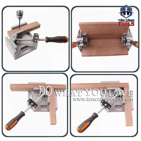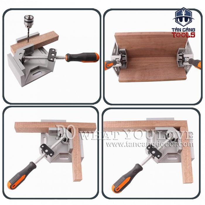 - Ứng dụng: là dụng cụ chuyên dụng/ chuyên nghiệp để làm hộp gỗ, khung tranh, bể cá, kẹp dưỡng hàn sắt 90 độ hay các đồ handmade khác.