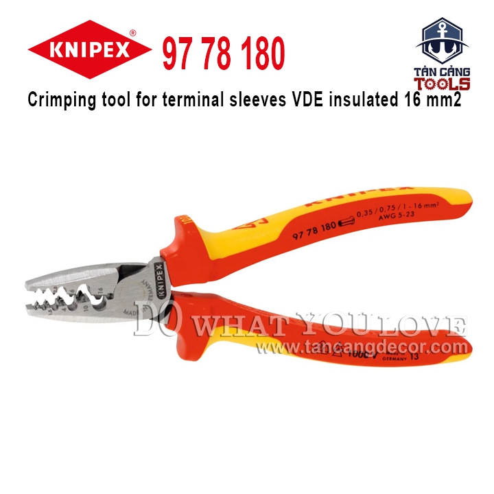 Kìm Bấm Cos Cách Điện 1000V 180 mm Knipex 97 78 180