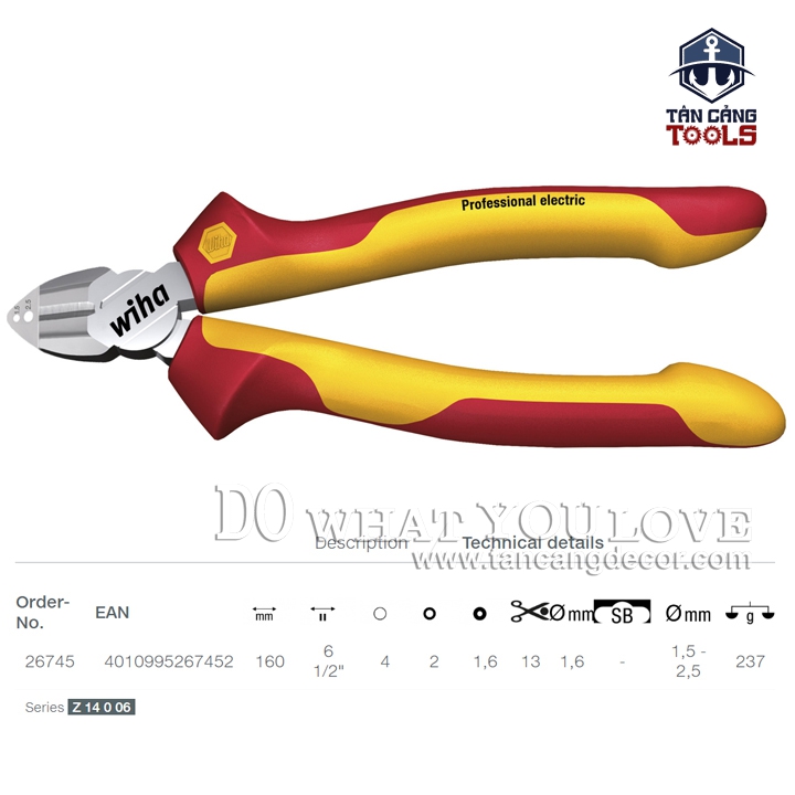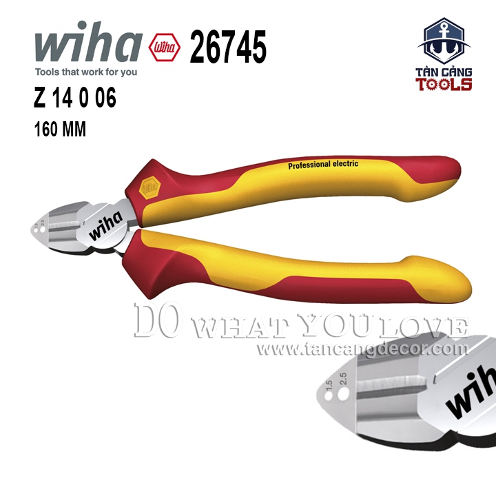 - Kìm Cắt Và Tuốt Dây Cách Điện 1000V 160 mm Wiha 26745 được tối ưu hóa lực bóp , lực truyền từ tay đến lưỡi kìm Tay cầm chịu được lực kéo 500N chống tuột và rơi khỏi cán kìm