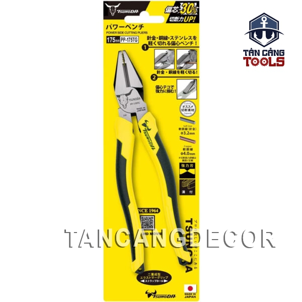 - Kìm Đa Năng 175 mm Tsunoda PP-175TG ( Cán Nhám ) được tối ưu hóa lực bóp , lực truyền từ tay đến lưỡi.