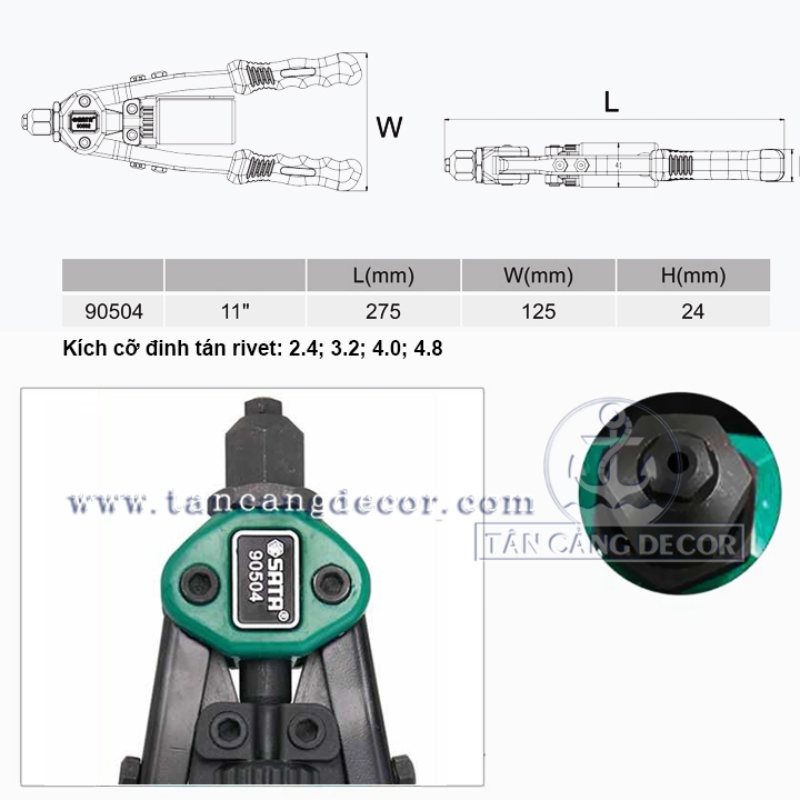 Dụng cụ rút ri vê có thể rút đính tán các kích cỡ : 2.4 – 3.2 – 4.0 – 4.8 mm