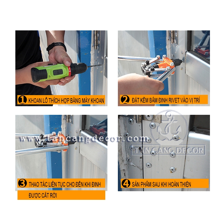 Khoan lỗ qua vật liệu với mũi khoan tương ứng cỡ rive.