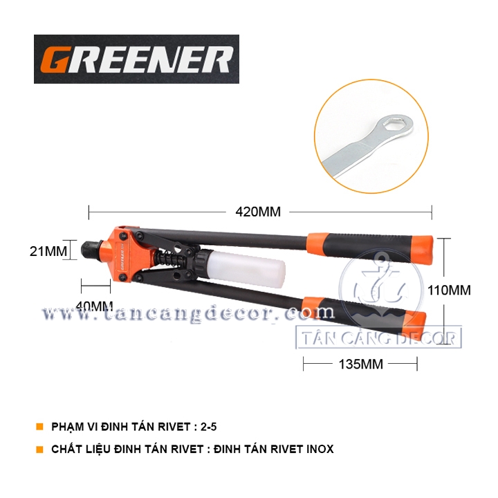 Kìm rút riveter inox 16 inches GREENER có bình chứa