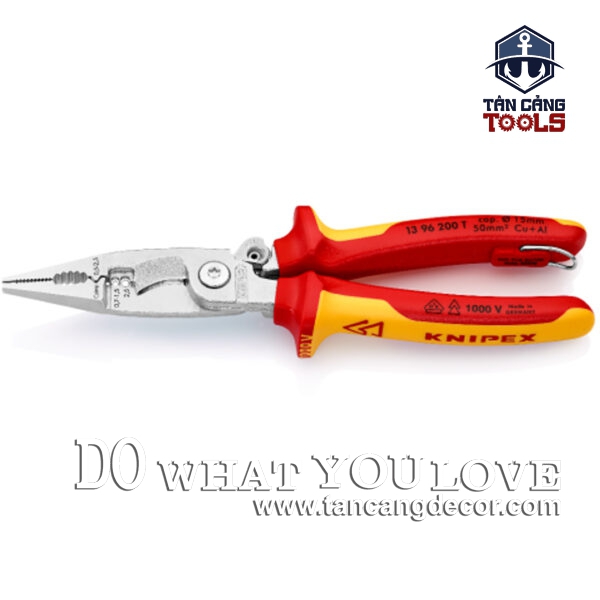 - Kìm Tuốt Dây Đa Năng 200 mm Cách Điện 1000V Knipex 13 96 200 được thiết kế và sản xuất theo tiêu chuẩn Đức. Kìm nhỏ, gọn và dễ sử dụng, với đường kính cắt dây lên đến 6 mm.