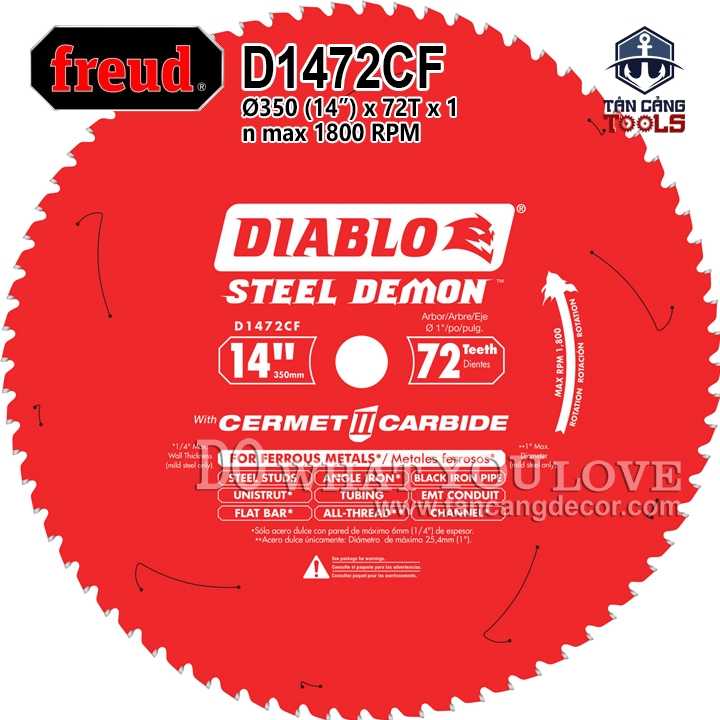 Lưỡi Cắt Sắt Hợp Kim Tua Chậm Diablo 350 x 25.4 mm x 72T Freud D1472CF