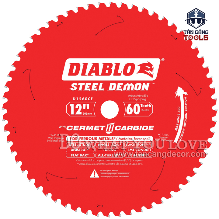 Lưỡi Cắt Sắt Hợp Kim Tua Chậm Diablo 350 x 25.4 mm x 72T Freud D1472CF với trọng lượng nhẹ, được cấu tạo từ hợp kim cứng chịu mài mòn đa góc đem lại hiệu quả công việc cao giúp cắt mịn và hạn chế ồn