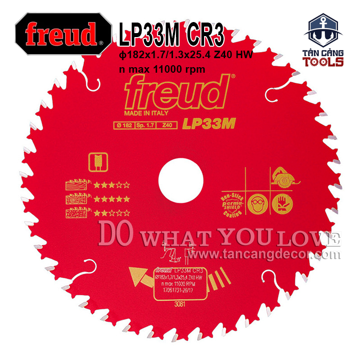 Lưỡi Cưa Gỗ Hợp Kim 182 x 25.4 mm x 40T Freud LP33M CR3