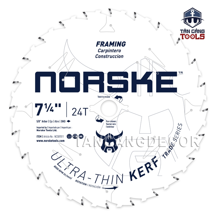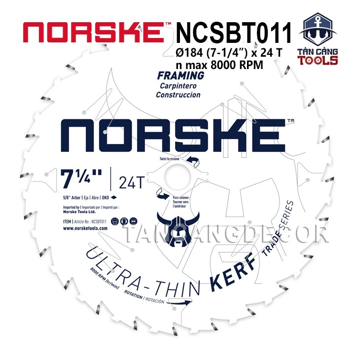 - Lưỡi Cưa Gỗ Hợp Kim 184 x 16/20 mm x 24T Norske NCSBT011.