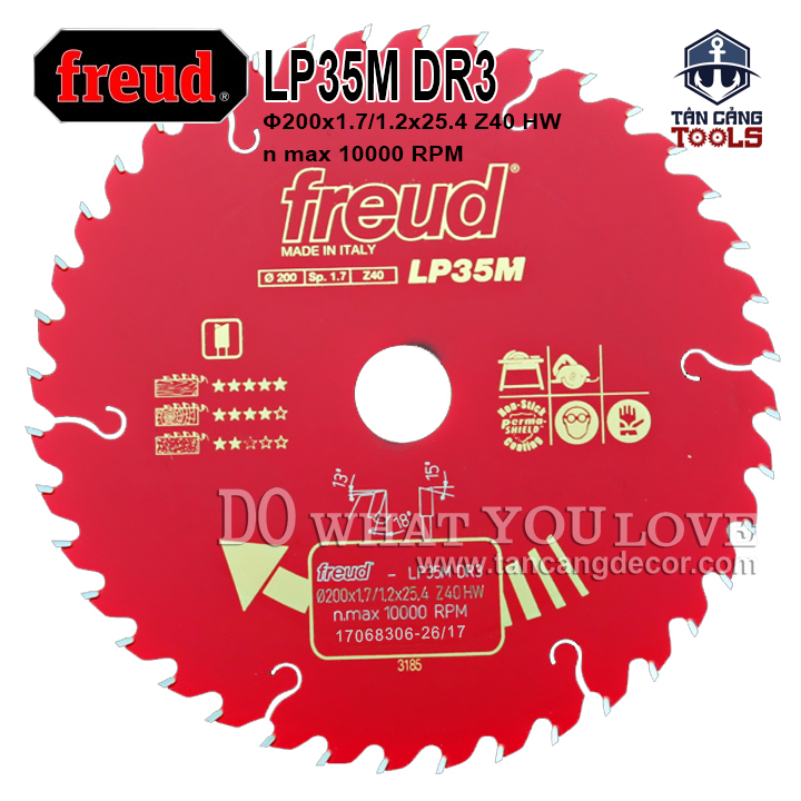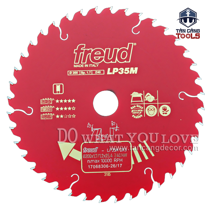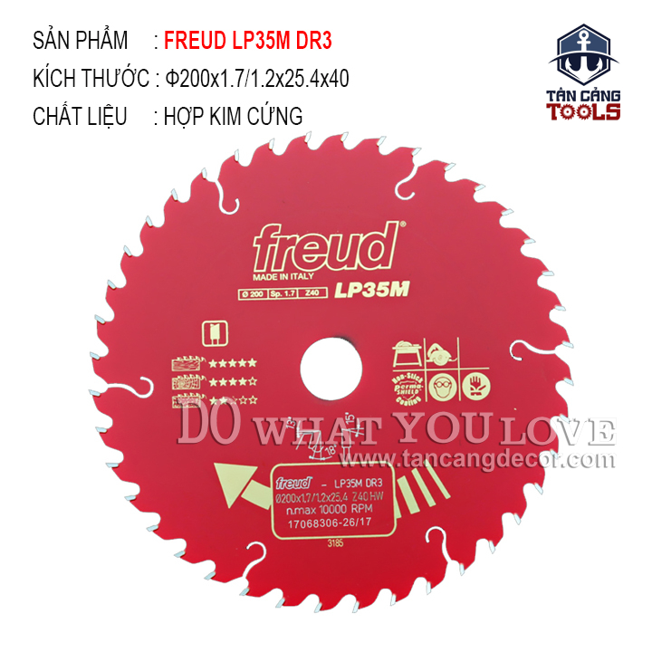 Lưỡi Cưa Gỗ Hợp Kim 200 x 25.4 mm x 40T Freud LP35M DR3
