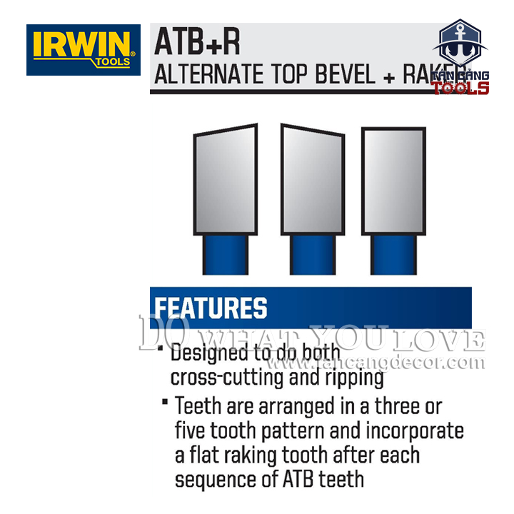 THÔNG TIN SẢN PHẨM: Thương Hiệu : IRWIN Mã Hiệu : 1807367 Xuất Xứ : Sản Xuất Ý Chất Liệu : Thép Hợp Kim – Hàn Hợp Kim Cho Độ Ổn Định Cao. Màu Sắc : Màu Xanh. Độ dày : Đĩa Cưa 1.8 mm – Lưỡi Cưa 2.2 mm Kích Thước : 10 inches ( 254 Mm ) Số Răng : 40 T Cốt Lưỡi : 16 mm ( 5/8 Inches ) Dạng Lưỡi : Răng Bậc Thang Ngược – Dovetail Chống Kickback. Được Phủ Lớp Teflon Chống Bám Dính Cao. Trang Bị Khe Chống Ồn Và Thoát Nhiệt. Sử Dụng Thích Hợp Với Các Dòng Máy Cabinet : Harvey, Nototec, Hisimen… Vòng Tua Tối Đa 7000 Vòng / Phút. Đơn Giá Bán 1 Lưỡi. Bạn Có Thể Tham Khảo Thêm Các Dòng Lưỡi Cắt Gỗ, Nhôm Với Các Kích Thước Khác Tại Tân Cảng Decor ^^