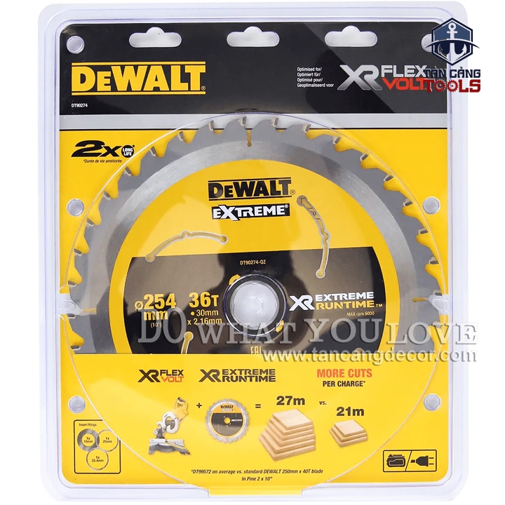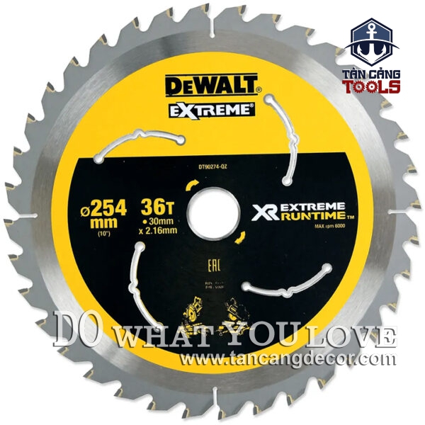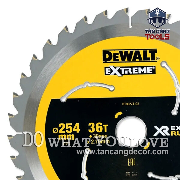 - Lưỡi Cưa Gỗ Hợp Kim 254 x 30 mm x 36 T DeWalt DT90274 ( Kèm 3 Vòng Đệm ) với trọng lượng nhẹ, được cấu tạo từ hợp kim cứng chịu mài mòn đa góc đem lại hiệu quả công việc cao cưa mịn và xẻ phôi ván.