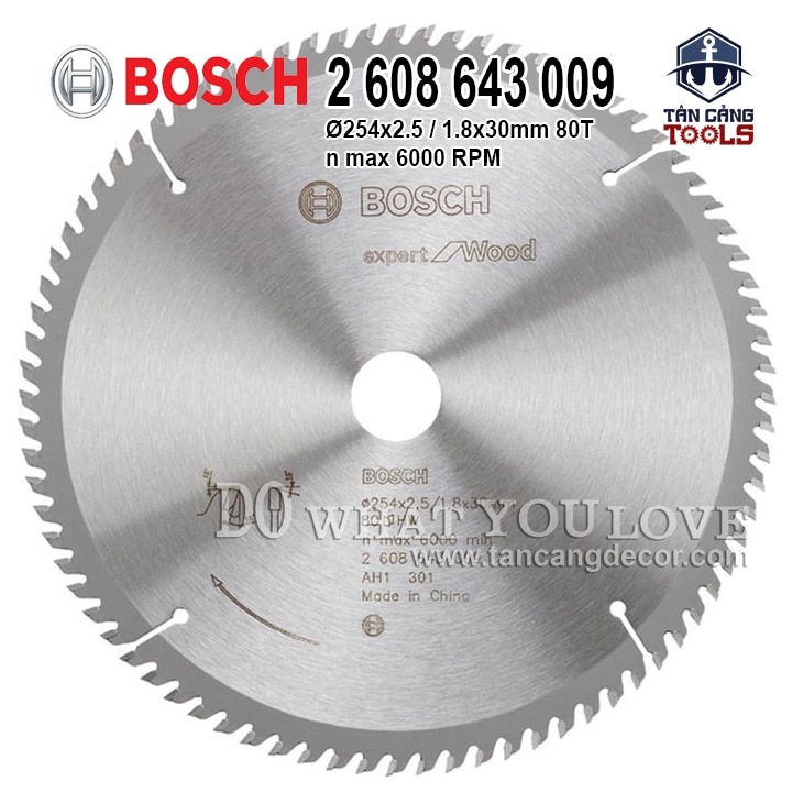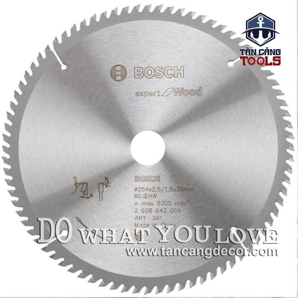 - Lưỡi Cưa Gỗ Hợp Kim 254 x 30 mm x 80T Bosch 2608643009 với trọng lượng nhẹ, được cấu tạo từ hợp kim cứng chịu mài mòn đa góc đem lại