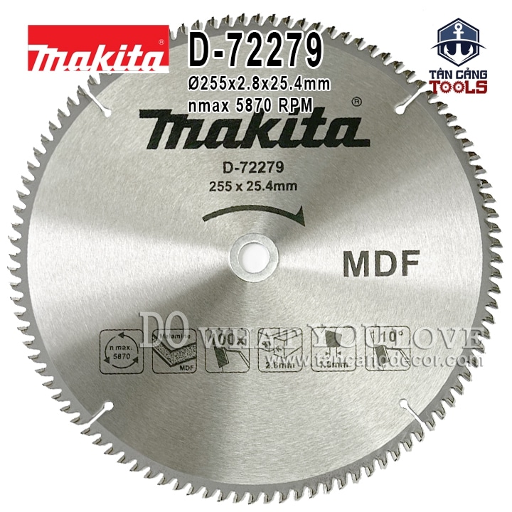 Lưỡi Cưa Gỗ Hợp Kim 255 x 25.4 mm x 100T Makita D-72279 ( Cắt MDF )
