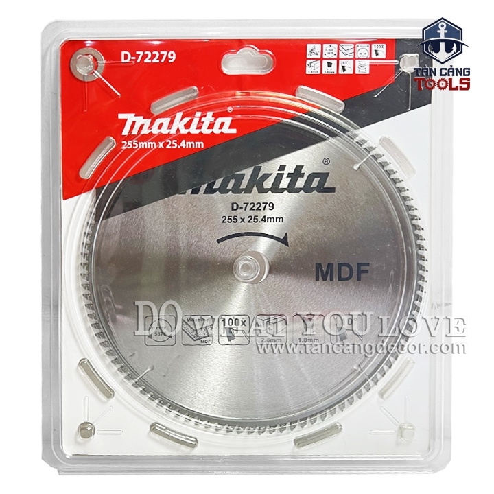 - Lưỡi Cưa Gỗ Hợp Kim 255 x 25.4 mm x 100T Makita D-72279 ( Cắt MDF ) với trọng lượng nhẹ, được cấu tạo từ hợp kim cứng chịu mài mòn đa góc đem lại hiệu quả công việc cắt ván gỗ công nghiệp hạn chế mẻ.