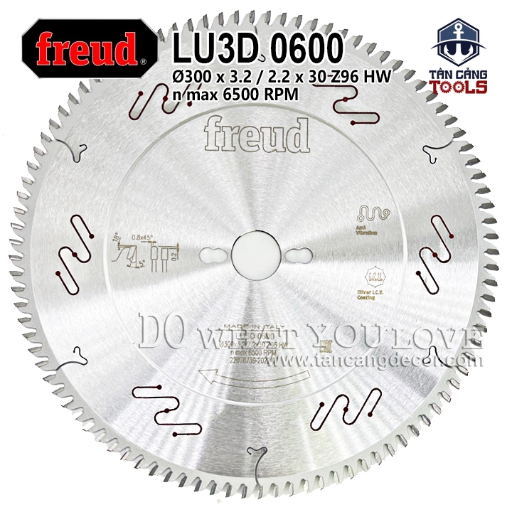 - Lưỡi Cưa Gỗ Hợp Kim 305 x 30 mm x 96T Freud LU3D 0600 với trọng lượng nhẹ, được cấu tạo từ hợp kim cứng chịu mài mòn đa góc đem lại hiệu quả công việc cao cưa mịn phôi ván.