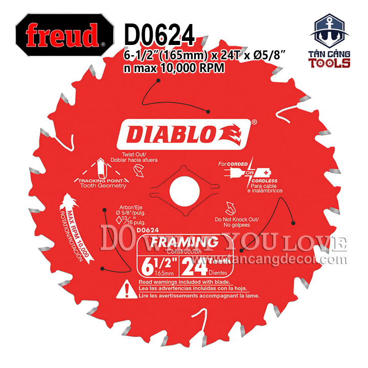 Lưỡi Cưa Gỗ Hợp Kim Diablo 165 x 16 mm x 24T Freud D0624