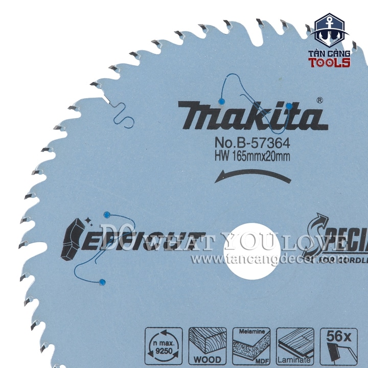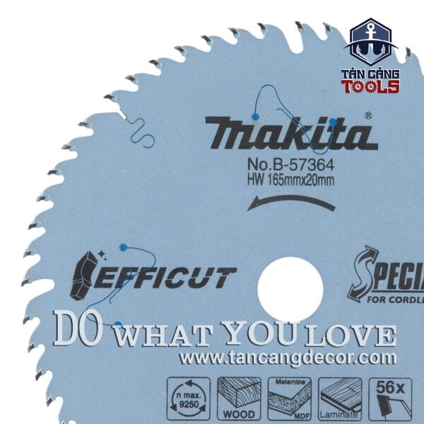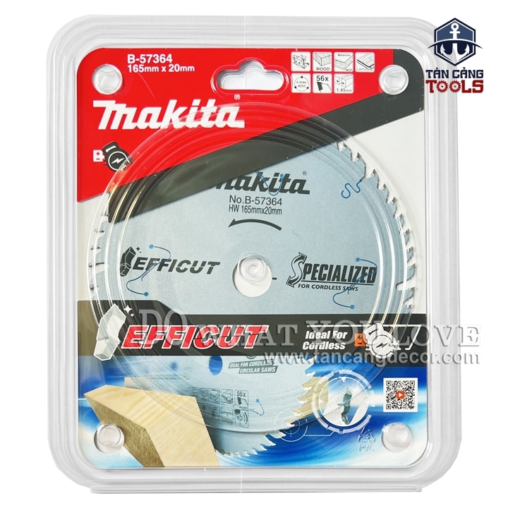 - Lưỡi Cưa Gỗ Hợp Kim Efficut 165 x 20 mm x 56T Makita B-57364 ( Chuyên Ván Công Nghiệp ) với trọng lượng nhẹ. mỏng, được cấu tạo từ hợp kim cứng chịu mài mòn đa góc đem lại hiệu quả công việc cao cưa mịn và xẻ phôi ván.