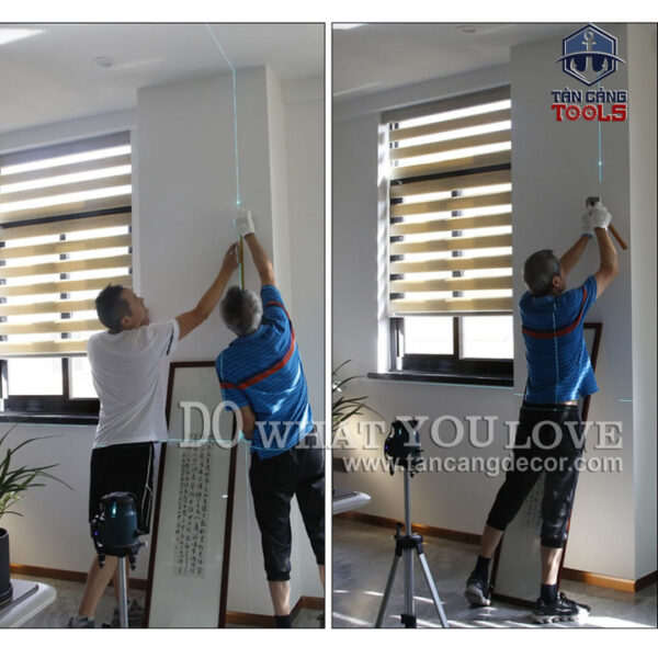 - Bước 4: Điều chỉnh độ sáng của tia laser cho thích hợp với môi trường làm việc và tiết kiệm năng lượng bằng nút Outdoor.