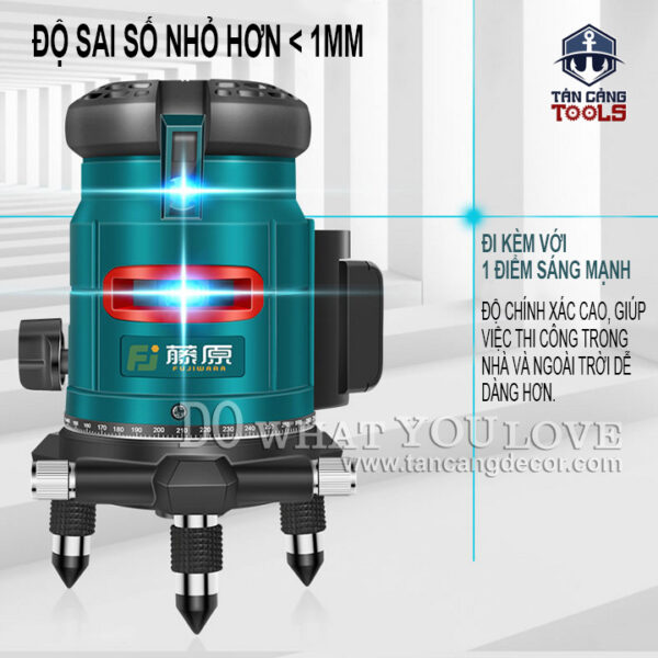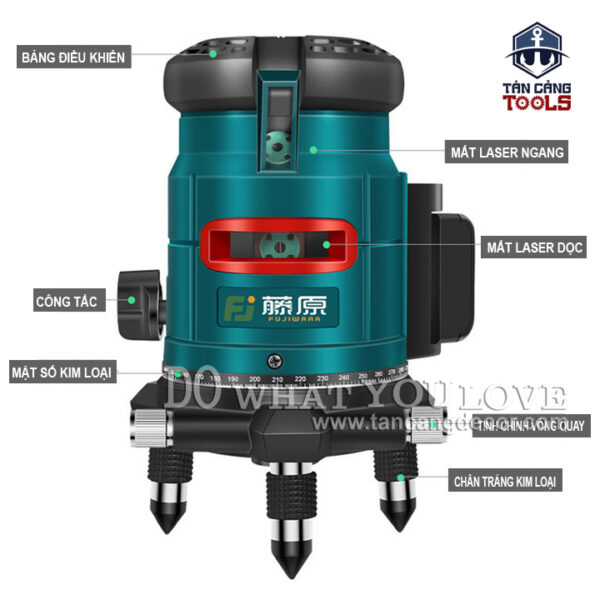 - Máy Cân Bằng Lazer 5 Tia Fujiwara LD5T được trang bị 5 tia và 5 điểm ánh sáng màu xanh cho khả năng xác định điểm và ánh sáng tốt nhất so với các màu sắc còn lại.