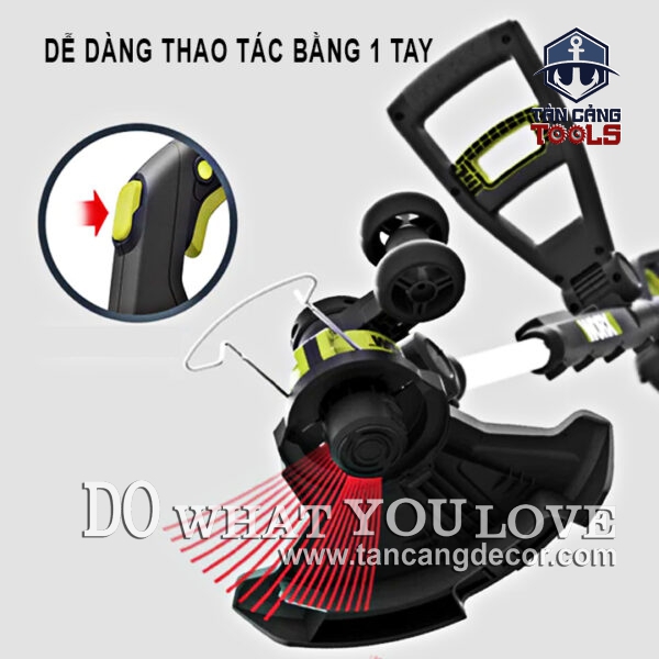 - Đi kèm với bánh xe để tăng độ ổn định và khả năng kiểm soát trong khi cắt tỉa và cắt viền.