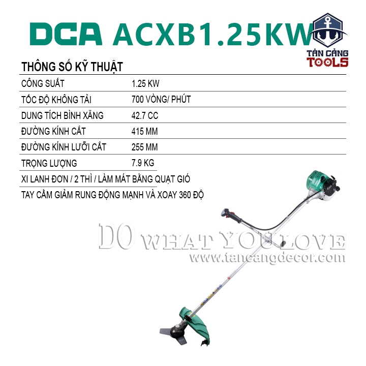 - Máy Cắt Cỏ Dùng Xăng DCA ACXB1.25KW là một loại máy cắt cỏ cầm tay sử dụng động cơ xăng để vận hành.