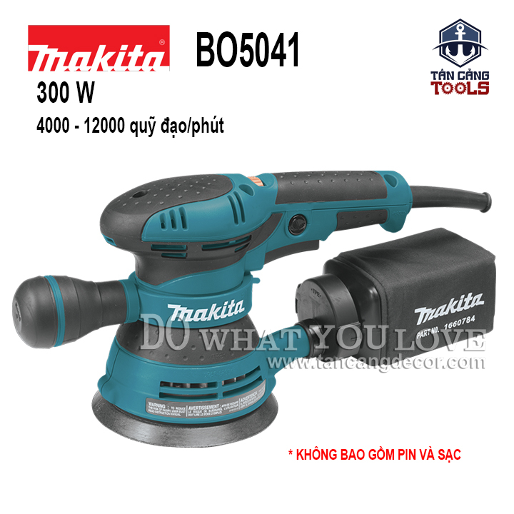 THÔNG TIN SẢN PHẨM: Xuất Xứ : Trung Quốc. Thương Hiệu : MAKITA – HÀNG CHÍNH HÃNG Mã Hiệu : BO5041 Chất Liệu : Thân máy cấu tạo nhựa ABS tăng độ bền cho máy, cách điện kép. Công suất : 300W Trọng lượng : 1.4 kg Sử dụng điện: : 220V – 240V/50Hz – 60Hz Chiều dài dây : 2 mét Tốc độ không tải : 4.000 – 14.000 vòng/phút Kích Thước Đế : 123 mm. Kích Thước Giấy Nhám : 125 mm. Kích Thước Máy : 218 x 123 x 153 mm. Trang Bị Tay Cầm. Có 5 Cấp Điều Tốc. PHỤ KIỆN KÈM THEO: túi bụi, miếng nhựa kết nối giấy nhám dành cho máy. Bảo hành: 6 Tháng