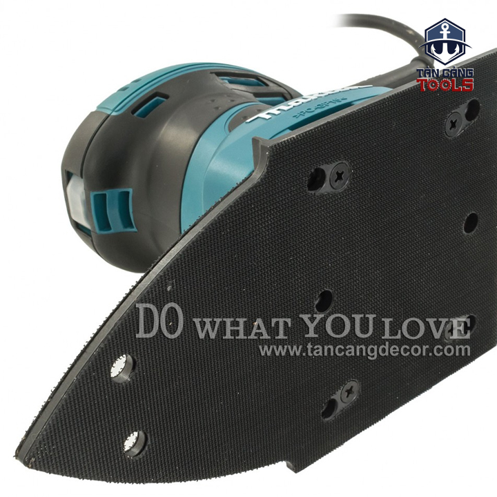 Phần đế tam giác giúp bạn thao tác tại các vị trí góc hẹp, cửa lá sách… một cách đơn giản và hiệu quả so với các dòng máy chà nhám thông dụng.