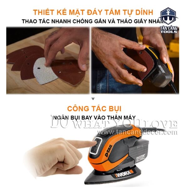 - Máy chà nhám rung Worx WX648.1 sẽ tạo sự khác biệt. Máy chà nhám D-Tail WORX WX648.1 mang đến cho bạn sự thoải mái và dễ dàng thao tác khi hoàn thiện những sản phẩm chi tiết nhỏ, và thiết kế gọn nhẹ nên bạn cần để đi vào những vị trí khó tiếp cận.