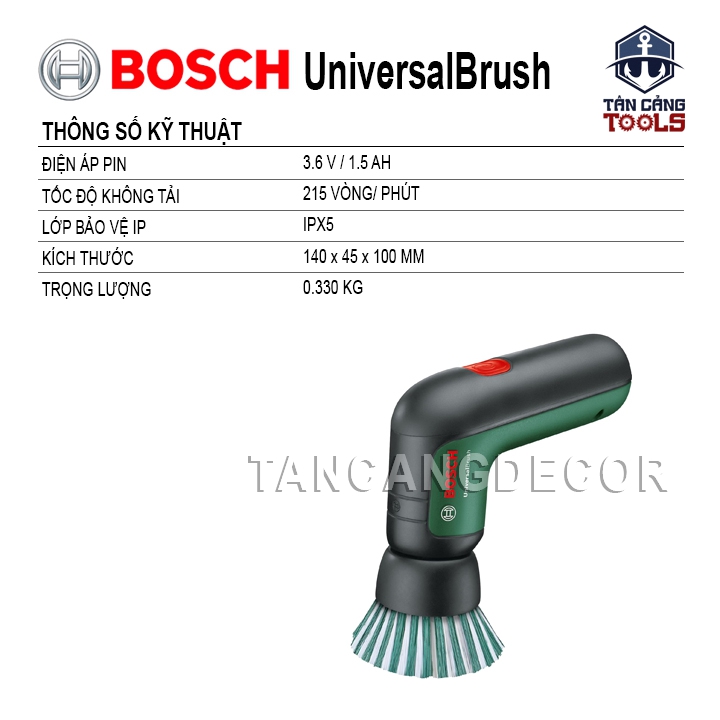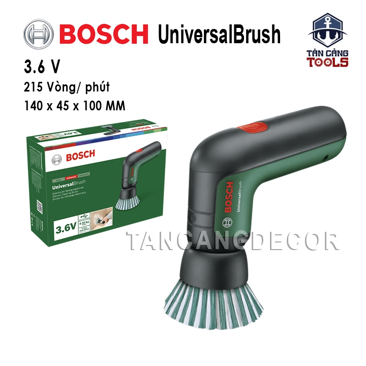 - Bosch Universal Brush giúp chà sạch gạch, mối nối, đồ nội thất sân vườn, lò nướng, nồi và chảo, kính và tiếp cận các khu vực hẹp như vòi hoặc vòi hoa sen…. một cách dễ dàng.
