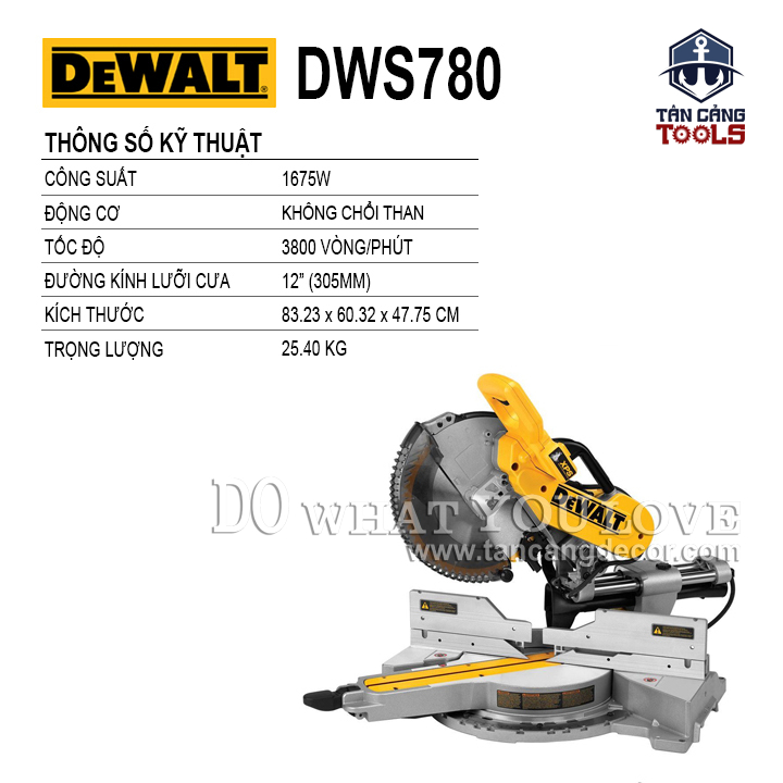 - Máy Cưa Cắt Đa Góc Trục Trượt Dewalt DWS780 là sản phẩm thế hệ mới của dòng máy cưa Dewalt, máy hoạt động mạnh mẽ, tăng 64% hiệu suất so với chiếc máy thông thường. Máy vận hành ổn định, êm ái.