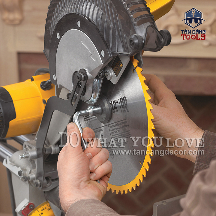 - Dewalt DWS780 có trọng lượng hơi nặng 25.4kg sẽ hơi bất tiện khi di chuyển. Máy được bảo quản trong hộp đựng giấy. Máy có trang bị lỗ để gắn túi chứa bụi giúp môi trường làm việc sạch sẽ hơn. Máy có trang bị tay cầm để bạn có thể điều chỉnh góc cắt dễ dàng.