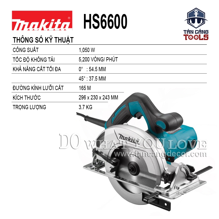 - Máy Cưa Đĩa 165mm Makita HS6600 1050W thiết kế nhỏ gọn, trọng lượng nhẹ dễ dàng cho việc mang theo sử dụng hoặc cất giữ. Thiết kế kiểu dáng đẹp, hiện đại dễ bắt mắt người nhìn.