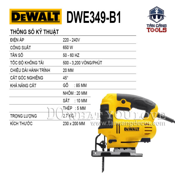 - Máy Cưa Lọng Cầm Tay 6 Cấp DeWalt DWE349-B1 650W thiết kế nhỏ gọn, trọng lượng nhẹ dễ dàng cho việc mang theo sử dụng hoặc cất giữ. Thiết kế kiểu dáng đẹp, hiện đại dễ bắt mắt người nhìn.
