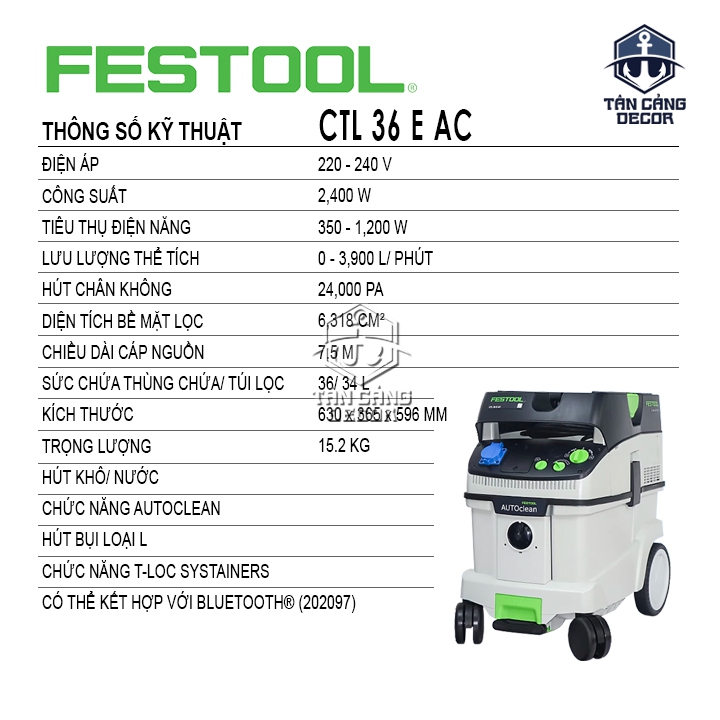 - Máy Hút Bụi 36 Lít Festool CLEANTEC CTL 36 E 230V.