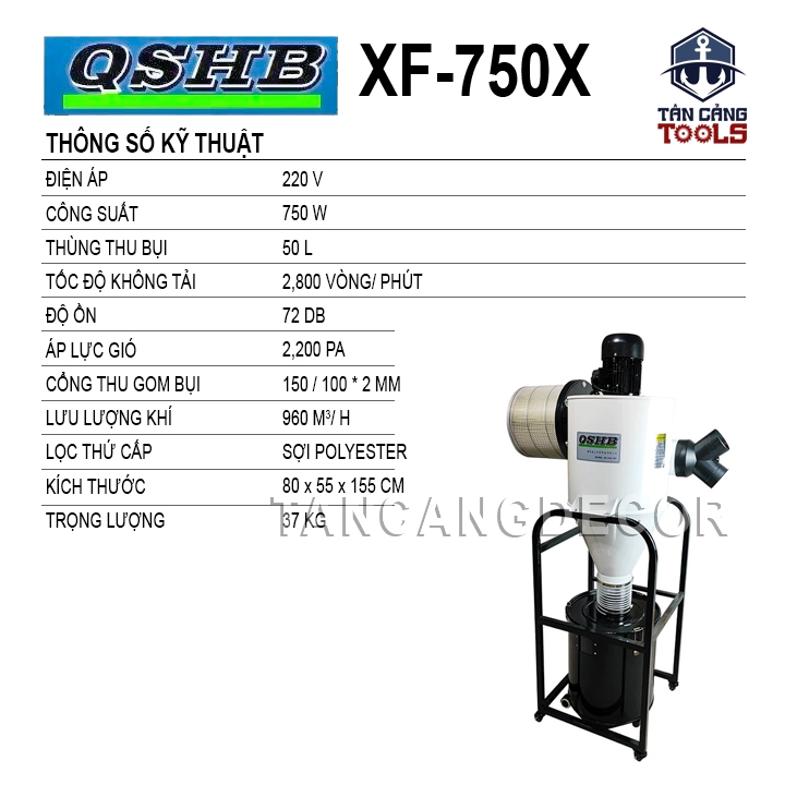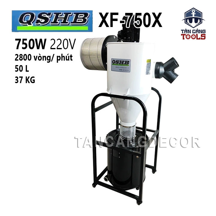 - Máy Hút Bụi Trung Tâm Mini QSHB XF750S 750W có công suất hoạt động mạnh phù hợp trong các xưởng nội thất có diện tích 50 m2.