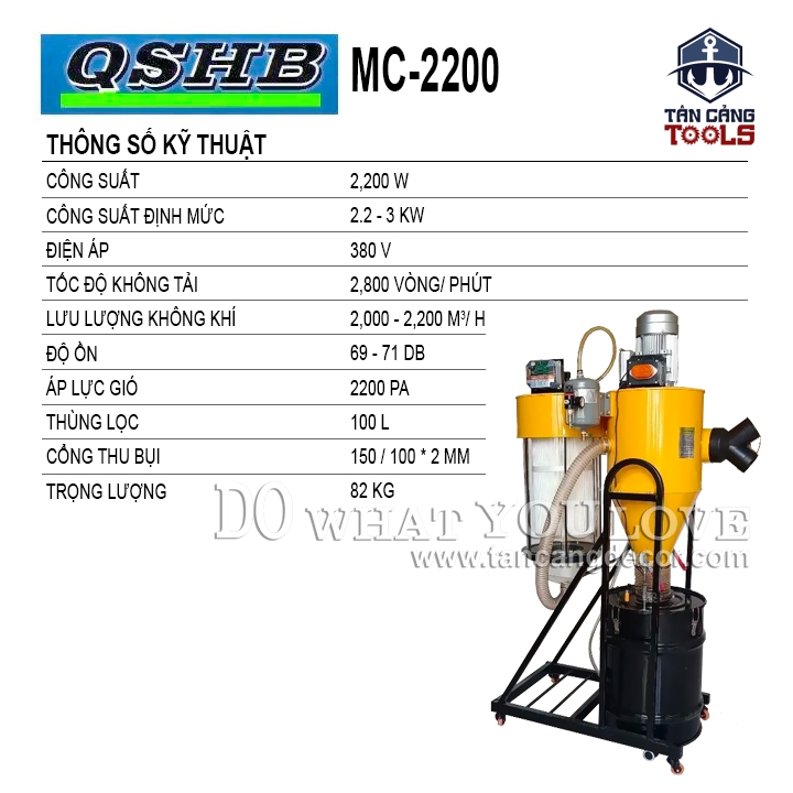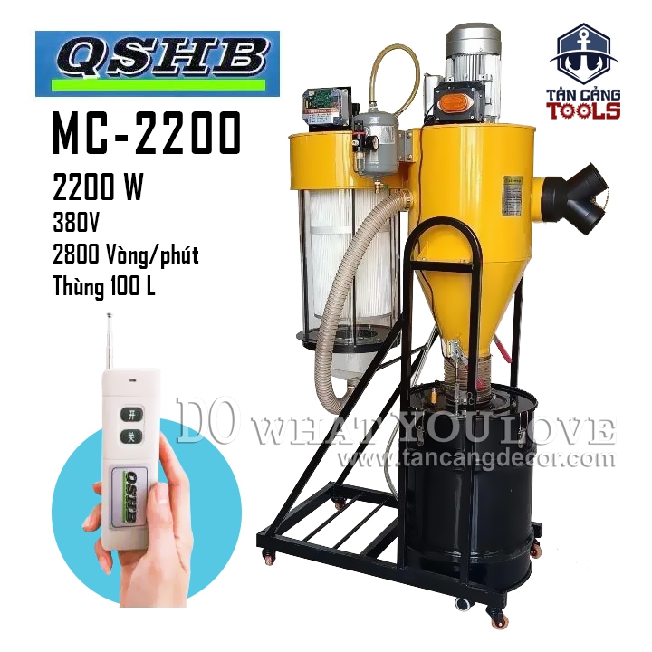 - Máy Hút Bụi Trung Tâm QSHB MC-2200 3000W ( Phiên Bản Điện 3 Pha ) có công suất hoạt động mạnh phù hợp trong các xưởng nội thất có diện tích 150 m2.