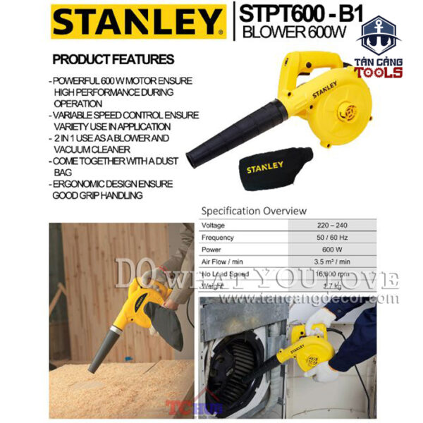 - Với công suất lên đến 600W, Máy Thổi Bụi Stanley STPT600-B1 600W mang lại tính hiệu quả cao khi sử dụng trong nhiều công việc khác nhau của bạn. Chỉ với thao tác đơn giản, bạn có thể thay đổi tốc độ dễ dàng, mang lại sự lựa chọn phù hợp cho từng mục đích sử dụng.