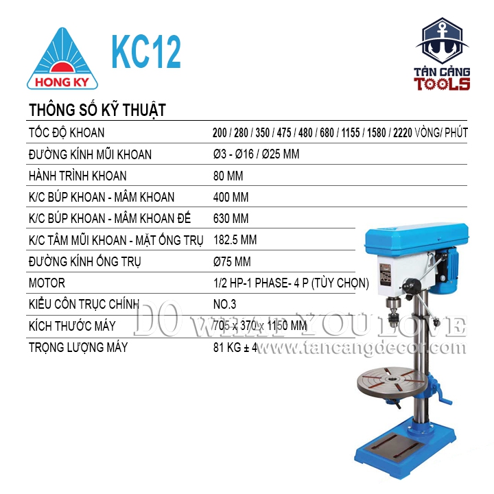 - Máy Khoan Bàn Hồng Ký KC12 1/2HP ( Khoan Côn ).